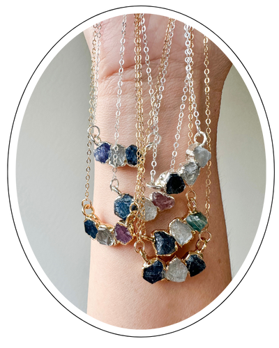When I create a new piece of jewelry, I start by sketching out my ideas on paper. I then choose the materials and stones I want to use, and begin the process of crafting the piece by hand. This part takes a long time because I want to make sure I'm choosing the best crystals for the piece and designing it exactly how I envision it. If this is a custom piece, I want to bring your vision to life.