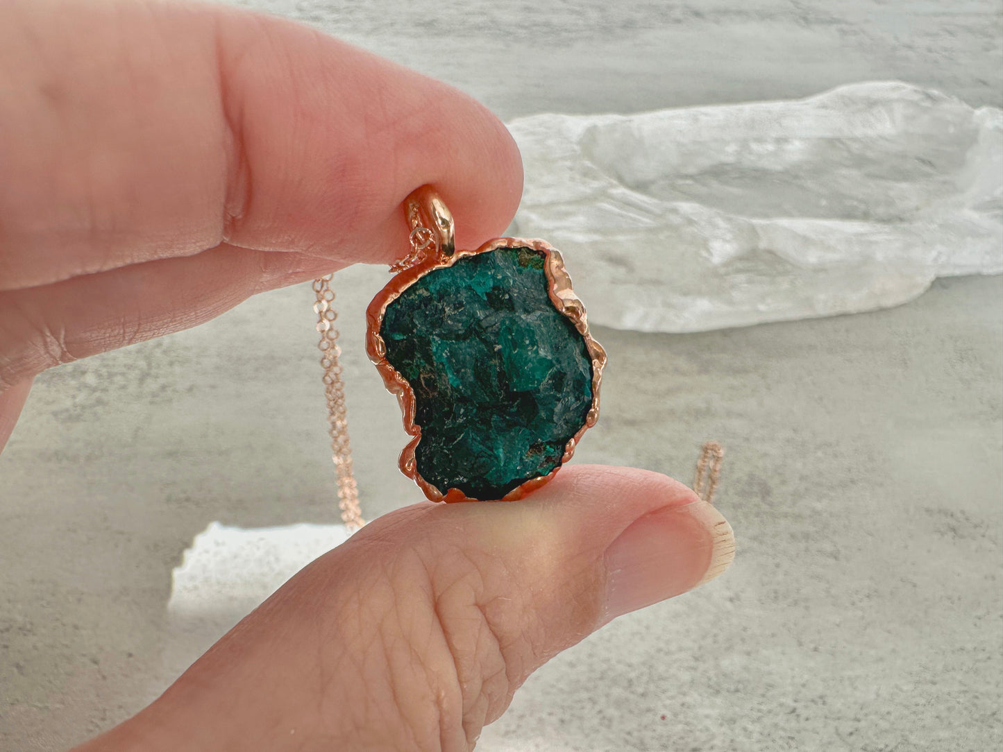 Dioptase is the stone for healing and grief. It soothes anger and sadness, allowing one to let go of the hurt that is holding one back from enjoying life. It enhances courage and confidence by shining a light on life and helping one to connect with one’s true self and soul. Dioptase relieves stress and trauma in present and past lives while promoting change and growth. If one is grieving, Dioptase guides the heart into healing.