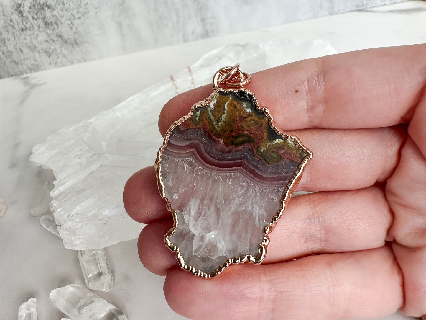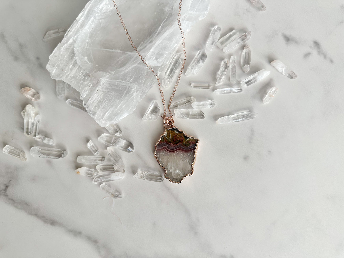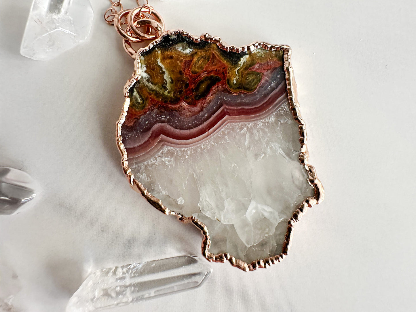 Agate has the power to harmonize yin and yang, the positive and the negative forces that hold the universe in place. A soothing and calming stone, agate works to bring in great strength. It gently facilitates acceptance of oneself, building self confidence. Agate’s love of truthfulness encourages speaking one’s truth. Agate with clear crystals can stimulate memories. It helps to overcome negativity and bitterness of the heart. It heals inner anger fostering love and the courage to start again. It is useful for emotional trauma.
