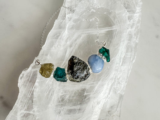 Apatite, Green Tourmaline, Angelite and Dioptase Necklcae